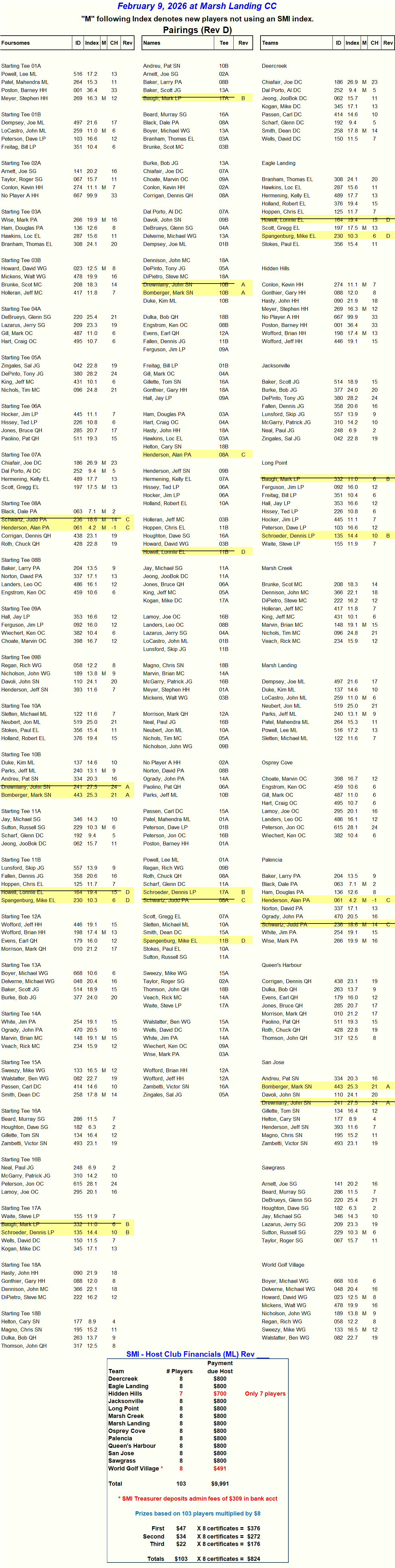 Handicap Indexes